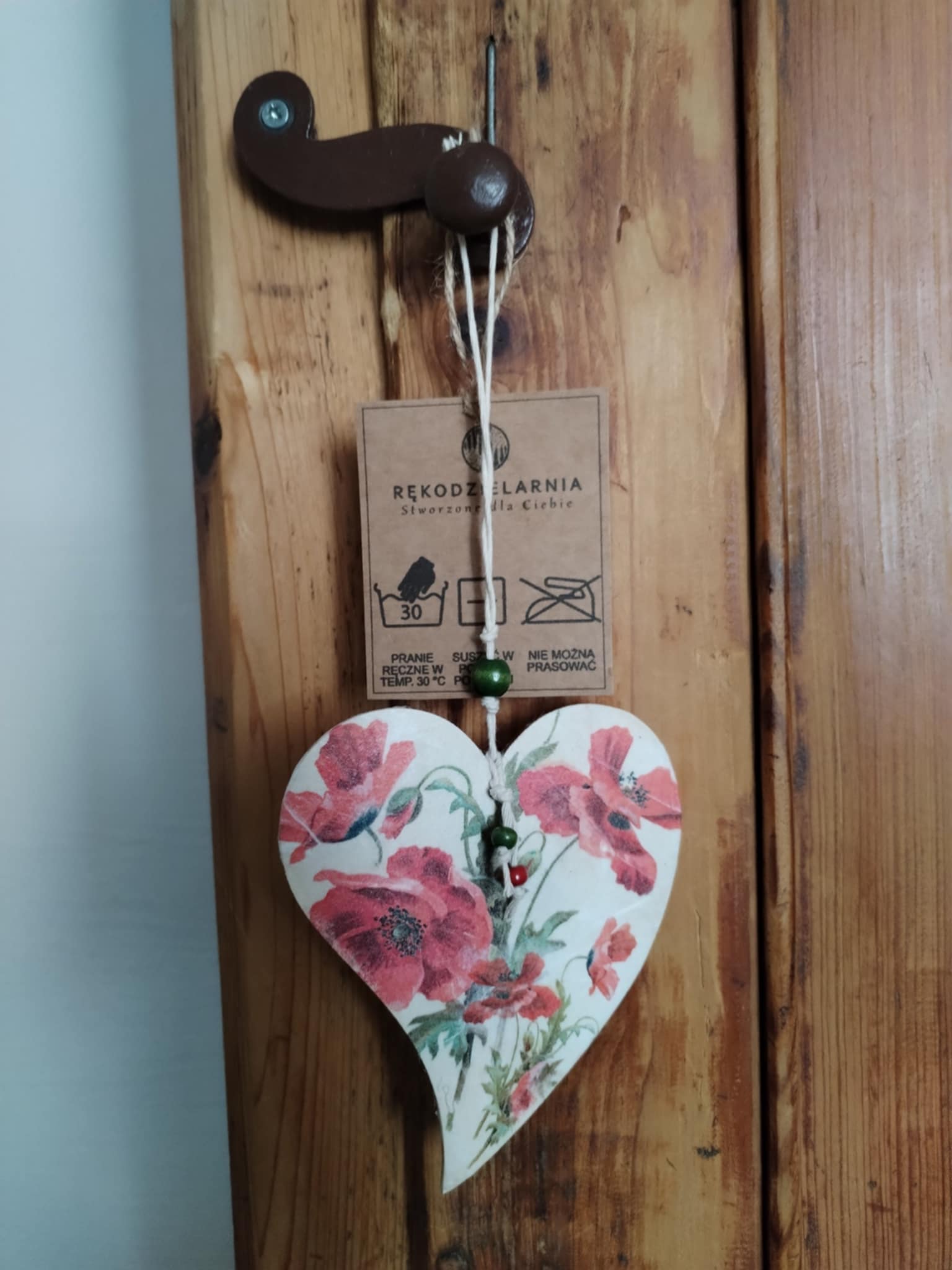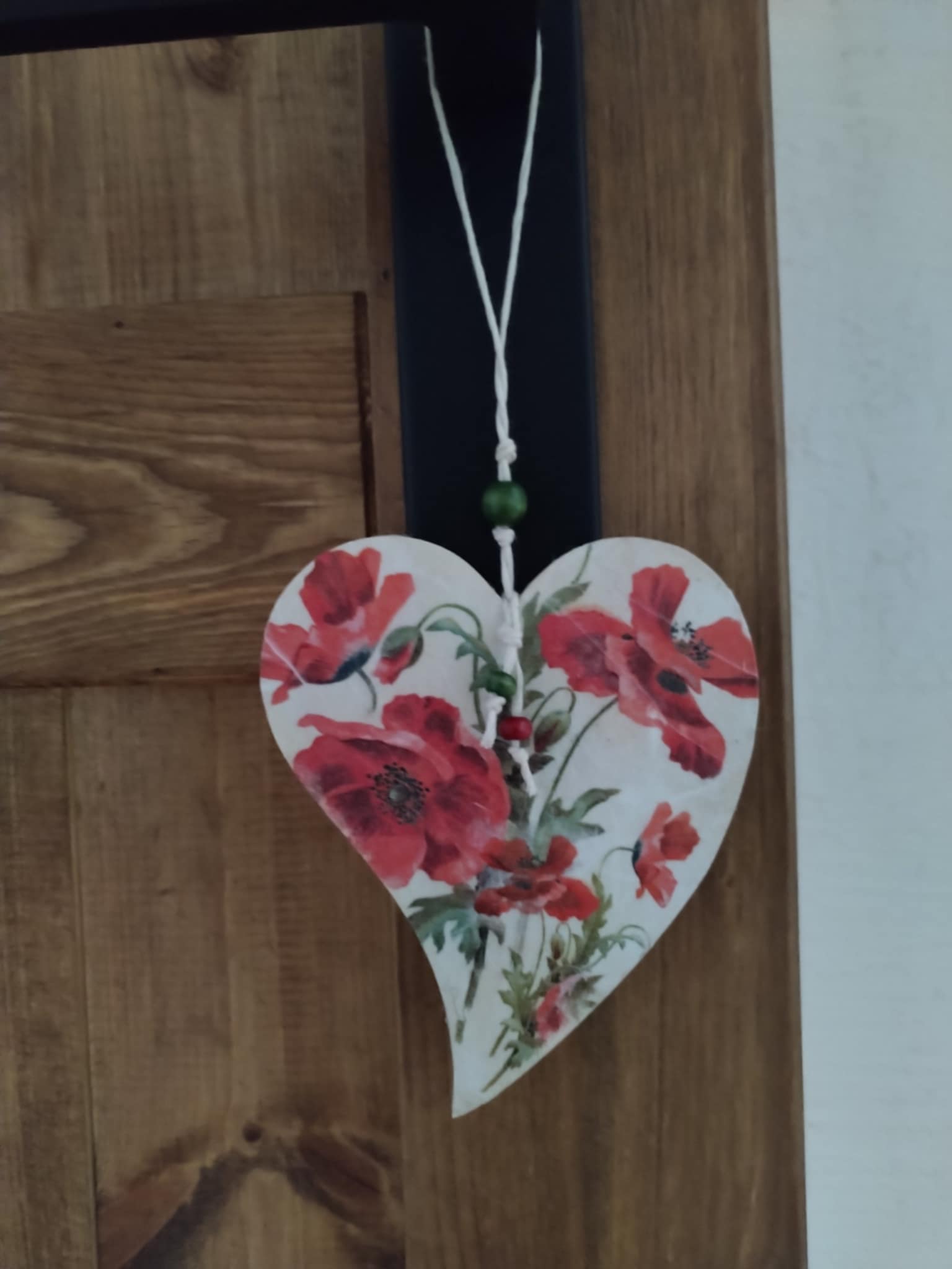 Zawieszka w kształcie serca została ozdobiona techniką decoupage (papiery, które wykorzystujemy w naszych pracach pochodzą ze sklepu: itdcollection.com). Dekoracja może ozdobić drzwi, okno, wezgłowie łóżka, itp. Serce można dołączyć do prezentu dla bliskiej osoby.